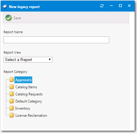 - On the Report Management > Reporting view, click New Legacy Report . The New Legacy Report dialog box opens.