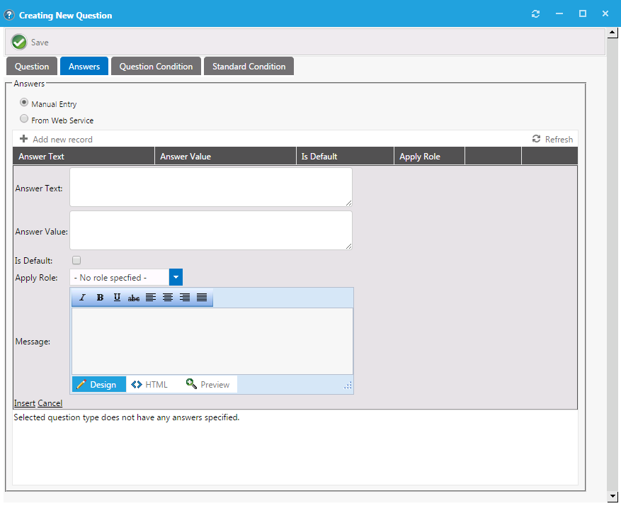 - In the Answer Text field, enter the value that will be displayed in the drop down list, such as