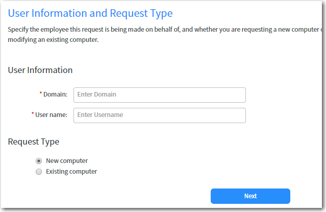 To use the Employee App Provision Request wizard to add a new computer to System Center Configuration Manager and deploy an operating system and applications, perform the following steps.