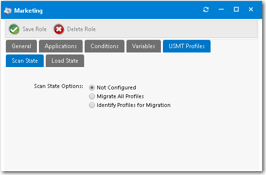User state migration refers to the process of transferring user persona information and settings between using the Microsoft User State Migration Tool (USMT), a command line utility program. You can configure a role in App Portal to migrate user profiles with USMT by intelligently detecting the user details to migrate based on role conditions.